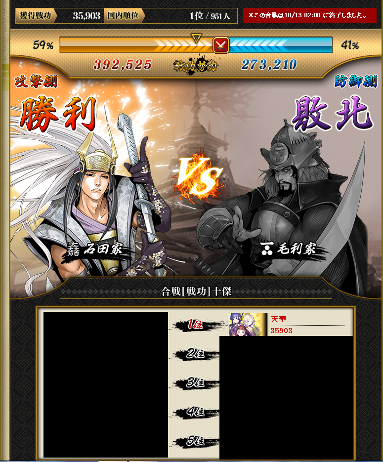 戦功は国5位で終了となりました^^