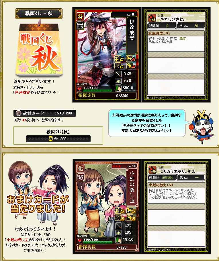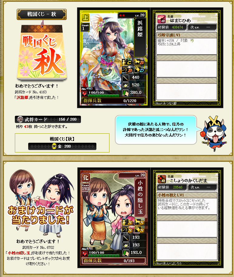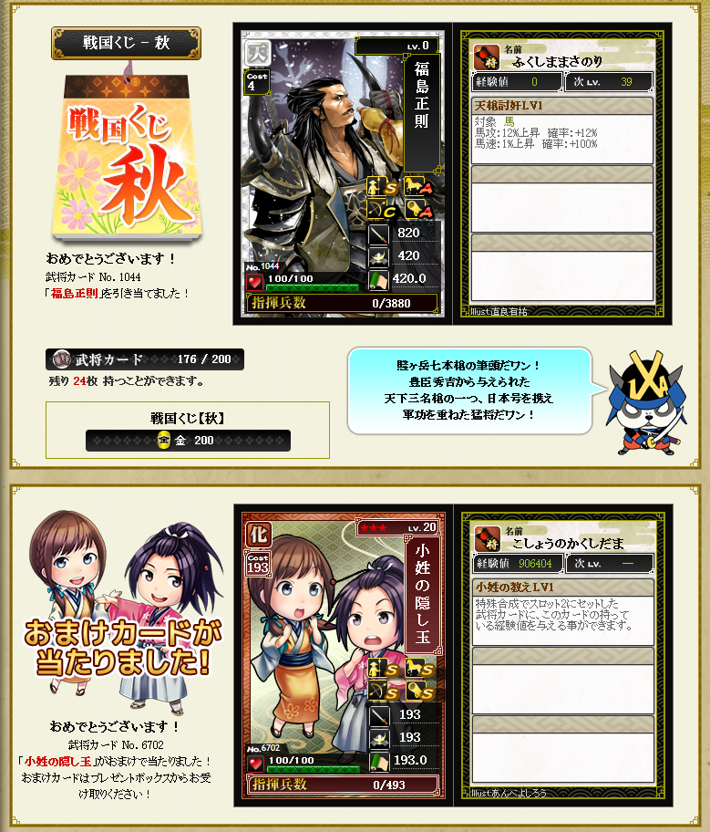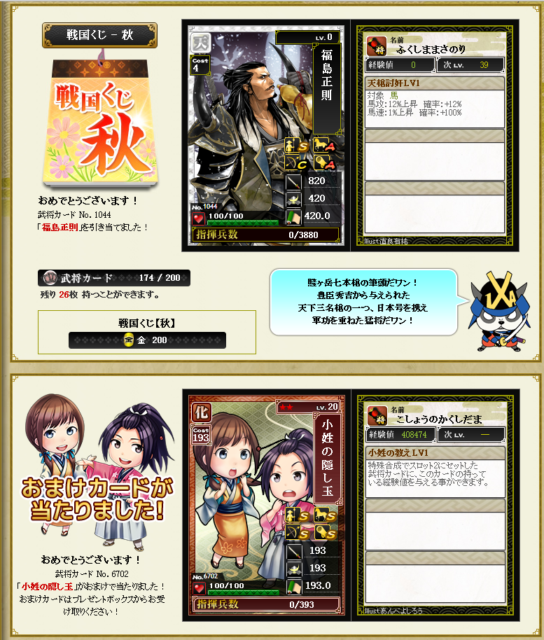 あと今日から始まった秋クジの結果載せて行きますw