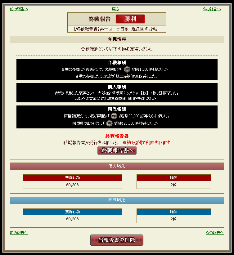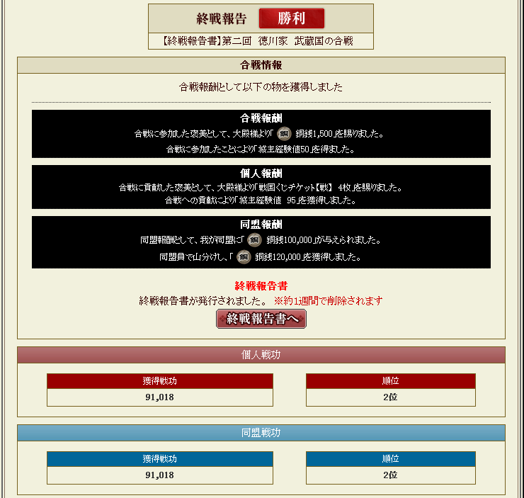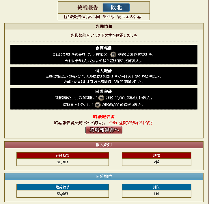 合戦レポは終わり