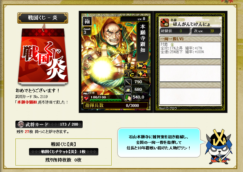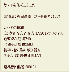 次は石田か宇喜多あたり狙おうかな・・・